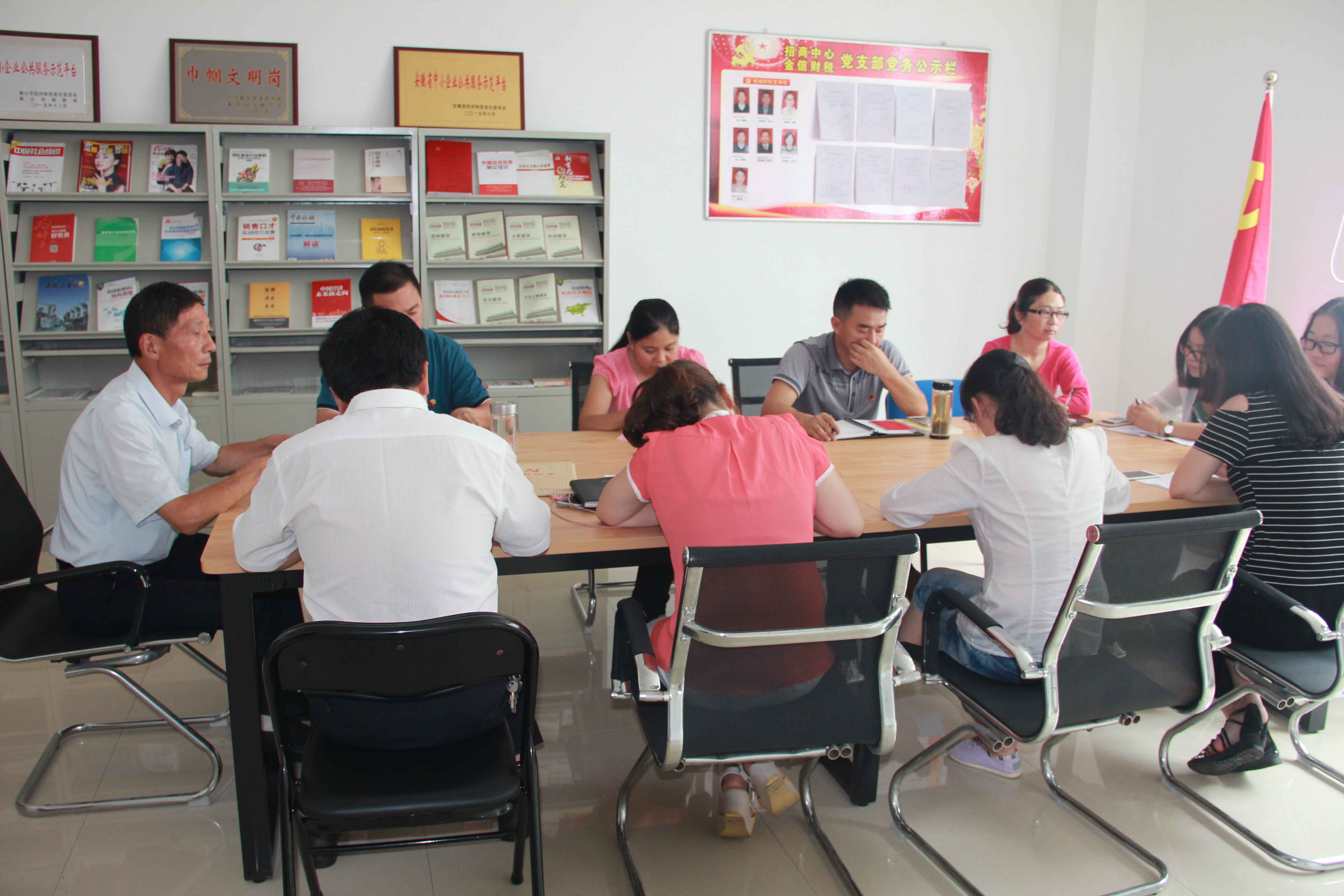 當(dāng)天下午,金信財(cái)稅聯(lián)合招商中心黨支部在招商中心二樓黨員活動室召開了“慶七一,金信財(cái)稅、招商中心聯(lián)合黨員大會”,支部全體黨員出席會議,會議由金信財(cái)稅黨支部組織委員吳云平主持。