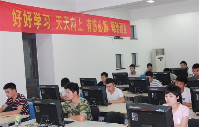 7月4日晚,歙縣青創(chuàng)職業(yè)學校電教室內燈光明亮,參加全縣退役士兵職業(yè)技能培訓班的小伙子們精神抖擻、興致盎然,“好好學習 天天向上 有惑必解 順勢而業(yè)”的大紅標語也格外醒目。學員們在白天理論教學的基礎上,利用晚上進行上機實際操作,鞏固提升所學知識,相得益彰??矗麄儗W得多認真??!