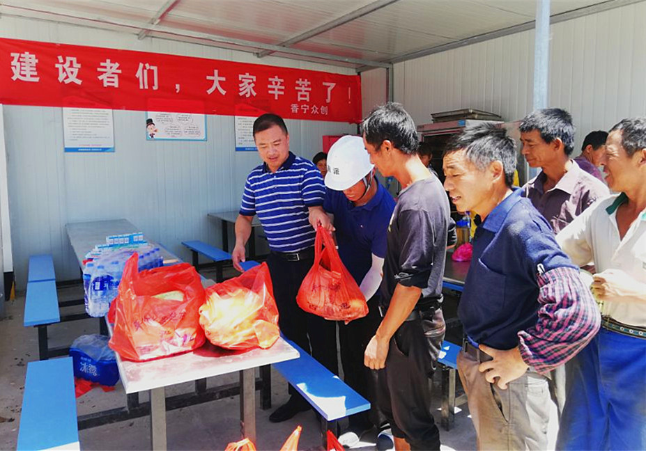 8月2日,中心主任胡海鋒來到香寧科技創(chuàng)業(yè)服務(wù)中心暨歙縣退役軍人創(chuàng)業(yè)孵化和就業(yè)促進(jìn)基地項(xiàng)目建筑工地,對(duì)冒高溫、戰(zhàn)酷暑的建設(shè)工友進(jìn)行親切慰問。胡海鋒主任將西瓜、礦泉水和解暑藥等慰問品分發(fā)到建設(shè)者手中,并感謝大家的辛勤付出,同時(shí)叮囑大家一定要注意防暑降溫,確保安全生產(chǎn)。