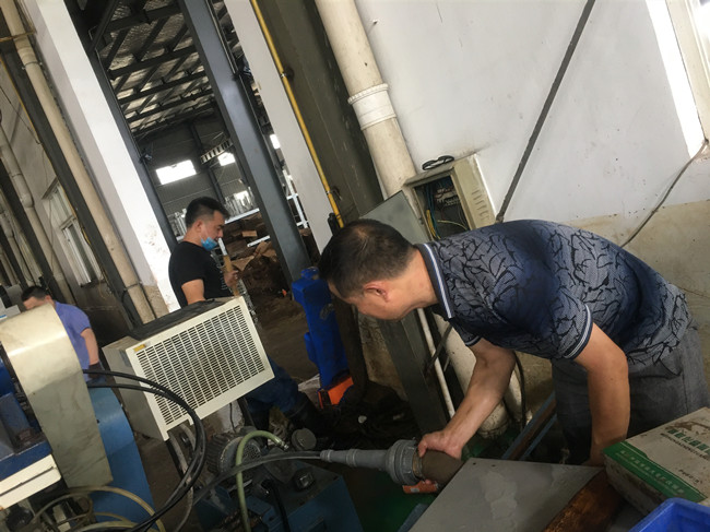 (圖為招商中心、金信財稅員工支援開發(fā)區(qū)名倫五金公司淤泥清掃。)