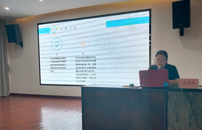 汪蕓是受理中心骨干成員之一,她工作認(rèn)真、待人熱情。主要負(fù)責(zé)企業(yè)工商注冊(cè)、信息變更、注銷等業(yè)務(wù)辦理。此次分享她結(jié)合日常工作積累和經(jīng)驗(yàn),從證照主體、公司名稱、注冊(cè)資本、經(jīng)營(yíng)范圍等幾個(gè)方面進(jìn)行詳細(xì)介紹,并指出注意事項(xiàng),使參與分享人員對(duì)“企業(yè)證照”的相關(guān)事項(xiàng)有了更直接、深入的了解,最后中心副主任汪銘作了點(diǎn)評(píng),并就企業(yè)注冊(cè)資本與法律責(zé)任的關(guān)系作了補(bǔ)充,使分享的內(nèi)容更加全面。