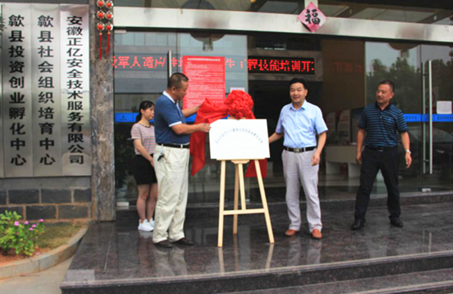 2020年9月10日,“黃山市退役軍人就業(yè)培訓(xùn)與創(chuàng)業(yè)孵化基地”揭牌儀式在歙縣招商投資服務(wù)中心大樓前隆重舉行。儀式由歙縣退役軍人事務(wù)局副局長潘煉主持,歙縣退役軍人事務(wù)局局長金自立作重要講話,黃山市退役軍人事務(wù)局副局長朱樂華出席儀式,并與金自立局長一起為基地揭牌。安徽香寧眾創(chuàng)科技服務(wù)有限公司、歙縣青創(chuàng)職業(yè)培訓(xùn)學(xué)校、歙縣招商投資服務(wù)中心以及參加當(dāng)日適應(yīng)性培訓(xùn)的60余位退役士兵見證了這一重要時(shí)刻。