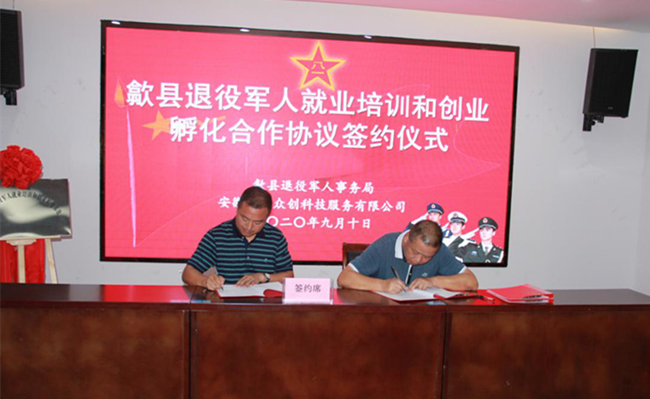揭牌儀式結(jié)束后,市縣退役軍人事務(wù)局還分別與安徽香寧眾創(chuàng)科技服務(wù)有限公司簽訂了《退役士兵及就業(yè)培訓(xùn)與創(chuàng)業(yè)孵化合作協(xié)議》,以此加強(qiáng)退役軍人職業(yè)教育和技能培訓(xùn)方面的合作,提高退役軍人就業(yè)能力,促進(jìn)退役軍人學(xué)以致用,助力退役軍人實(shí)現(xiàn)更好就業(yè)創(chuàng)業(yè)。