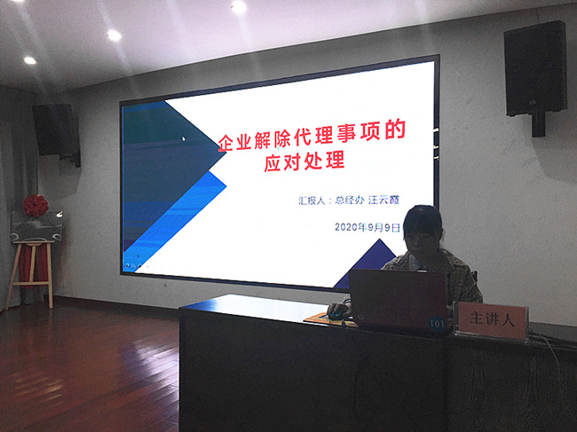 平常工作中,我們時(shí)常會(huì)遇到企業(yè)解除代理的情況發(fā)生,特別是今年,受疫情、洪災(zāi)以及外部市場(chǎng)競(jìng)爭(zhēng)等多方面影響下,我們遇到最多的就是解除代理、要求降低代理費(fèi)、企業(yè)注銷等情況,那么我們?nèi)绾尾扇∫粋€(gè)較好的應(yīng)對(duì)措施呢?2020年9月9日,總經(jīng)辦汪云霞以“企業(yè)解除代理事項(xiàng)的應(yīng)對(duì)處理”為題,與大家共同交流這一敏感話題。