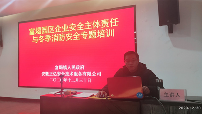 2020年12月30日,以“企業(yè)安全主體責(zé)任與冬季消防安全”為主題的富堨園區(qū)企業(yè)安全生產(chǎn)管理培訓(xùn)在歙縣招商投資服務(wù)中心順利舉行。培訓(xùn)由我中心下屬機(jī)構(gòu)——安徽正億安全技術(shù)服務(wù)有限公司注冊(cè)安全工程師吳智勇主講,富堨園區(qū)21家重點(diǎn)企業(yè)的負(fù)責(zé)人或車間主任、安全員等20余人參加培訓(xùn)。