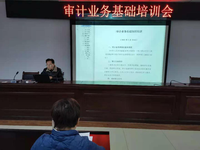 當日,縣審計局的葉慶利總審計師親自授課,他圍繞審計業(yè)務的基礎工作,從審計依據--審計實施程序--常用審計文書--調查了解和審計實施方案--審計證據獲取,以及審計工作底稿--審計思路方法--審計項目審核復核審理審定--審計檔案等內容逐一進行詳細講解。并有政府投資審計轉型、審計情況統(tǒng)計等方面的知識交流。