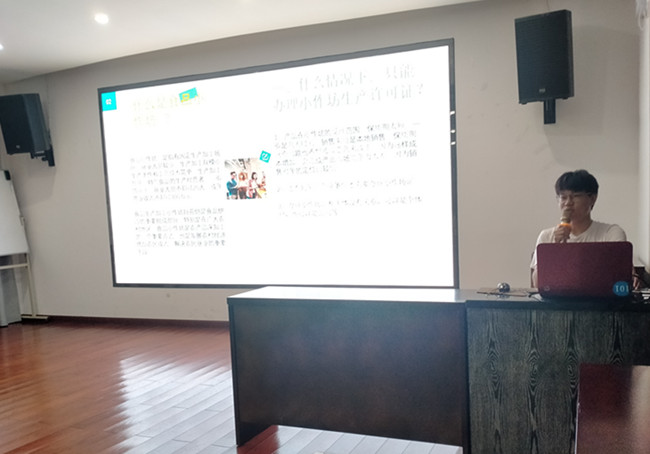 方金銘是經(jīng)濟(jì)業(yè)務(wù)部成員之一,日常主要負(fù)責(zé)企業(yè)證照辦理、變更等工作。他性格開朗樂觀,工作認(rèn)真細(xì)致,積極上進(jìn)。此次分享他主要結(jié)合自身辦理的小作坊登記證流程,先對小作坊做了簡單介紹、隨后圍繞辦理證件的所需條件、所需材料、注意事項(xiàng)等幾個方面進(jìn)行詳細(xì)講解,經(jīng)過方金銘的講解,大家對小作坊企業(yè)有了更加深入的了解和認(rèn)知,對國家食品生產(chǎn)監(jiān)管、此類業(yè)務(wù)辦理有了更好的掌握,有助于提升為客戶服務(wù)的專業(yè)水平。