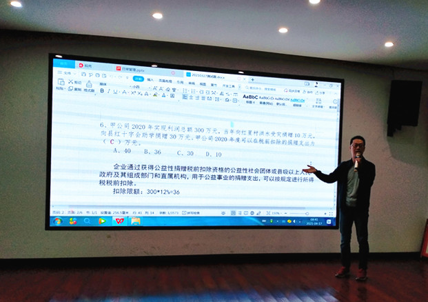 測(cè)試結(jié)束后,中心副主任、注冊(cè)會(huì)計(jì)師汪銘對(duì)測(cè)試題進(jìn)行分析和解答,并對(duì)相關(guān)重點(diǎn)、難點(diǎn)、易錯(cuò)點(diǎn)著重講解。通過(guò)書(shū)面測(cè)試及考后講解,中心服務(wù)人員對(duì)相關(guān)的知識(shí)考點(diǎn)及稅收政策等會(huì)有更全面的了解,有助于加強(qiáng)和鞏固專(zhuān)業(yè)知識(shí)的學(xué)習(xí)和提升,更好的為客戶(hù)做好服務(wù)。