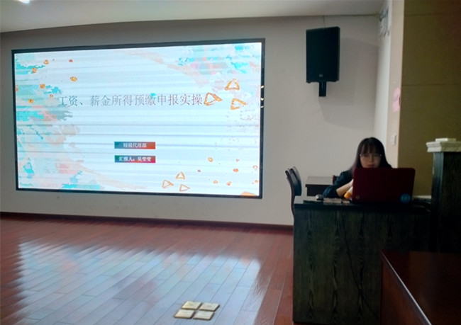 2021年11月6日,由財稅代理部會計吳瑩瑩主講的“工資、薪金所得預繳申報實操”專題PPT分享在一樓眾創(chuàng)空間舉行,園區(qū)企業(yè)負責人和中心財稅服務人員50余人參與此次分享。