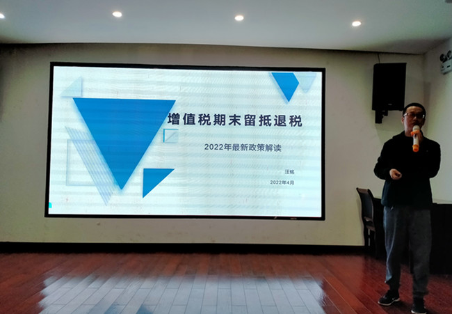 緊接著,汪銘副主任又從增值稅期末退稅主題的概念、適用政策的納稅人必須符合的條件、具體的退還政策、以及征管要求等方面對(duì)——增值稅期末留抵退稅政策做了具體講解。汪銘副主任善于用圖表的方式,將重要的知識(shí)點(diǎn)梳理劃分、對(duì)比呈現(xiàn),使得參與人員對(duì)重要的知識(shí)點(diǎn)能深刻的掌握。