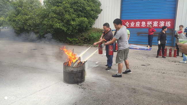 在演練現(xiàn)場,我公司注冊安全工程師吳智勇從應(yīng)急演練的目的和意義,人員分工和職責,事故報告和處置等方面進行宣傳和闡述,并講解滅火器的使用方法。當日,模擬車間某處發(fā)生火警,立即啟動應(yīng)急預案,公司負責人黃某擔任現(xiàn)場指揮,按照預案程序和分工開展應(yīng)急救援,車間現(xiàn)場人員就近展開消防自救。通過生產(chǎn)現(xiàn)場員工及時撲救,火警得到有效處置。演練中,尤其注意讓女員工學會事故報告,學會開啟、使用滅火器,撲救初起火災,做到“打早、打小、打了”,增強員工消防自救的應(yīng)急處置能力。