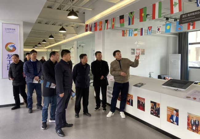 衢州市有關(guān)領(lǐng)導(dǎo)首先參觀了大龍網(wǎng)集團(tuán)旗下的歙縣龍工場(chǎng),歙縣大龍網(wǎng)區(qū)域負(fù)責(zé)人江笑平向到訪領(lǐng)導(dǎo)介紹了龍工場(chǎng)的基本情況、運(yùn)營(yíng)模式及優(yōu)勢(shì)背景;并對(duì)園區(qū)供應(yīng)鏈融資服務(wù)平臺(tái)、電商直播中心、運(yùn)營(yíng)中心、共享會(huì)議室、洽談區(qū)等多個(gè)模塊運(yùn)營(yíng)流程及整體情況進(jìn)行了詳細(xì)講解。通過江總的介紹,衢州市領(lǐng)導(dǎo)對(duì)歙縣龍工場(chǎng)有了清楚的認(rèn)知,并對(duì)大龍網(wǎng)運(yùn)用數(shù)字貿(mào)易推動(dòng)黃山眾多實(shí)體企業(yè)走出國(guó)門、走向世界的成功做法和發(fā)展前景表示贊賞。