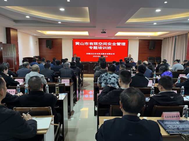 2023年4月27日,全市工貿(mào)行業(yè)(有限空間作業(yè))安全管理專題培訓(xùn)班順利開(kāi)班。本次培訓(xùn)由安徽正億安全技術(shù)服務(wù)有限公司承辦,全市工貿(mào)行業(yè)涉及有限空間作業(yè)的企業(yè)近80家共110名學(xué)員參加。黃山市應(yīng)急管理局副局長(zhǎng)吳永杰出席開(kāi)班儀式并做重要講話,歙縣應(yīng)急局張衛(wèi)國(guó)局長(zhǎng)主持會(huì)議。屯溪區(qū)、徽州區(qū)、祁門(mén)縣、黟縣、市高新區(qū)等區(qū)縣應(yīng)急管理局領(lǐng)導(dǎo)專程帶隊(duì)參加培訓(xùn)。