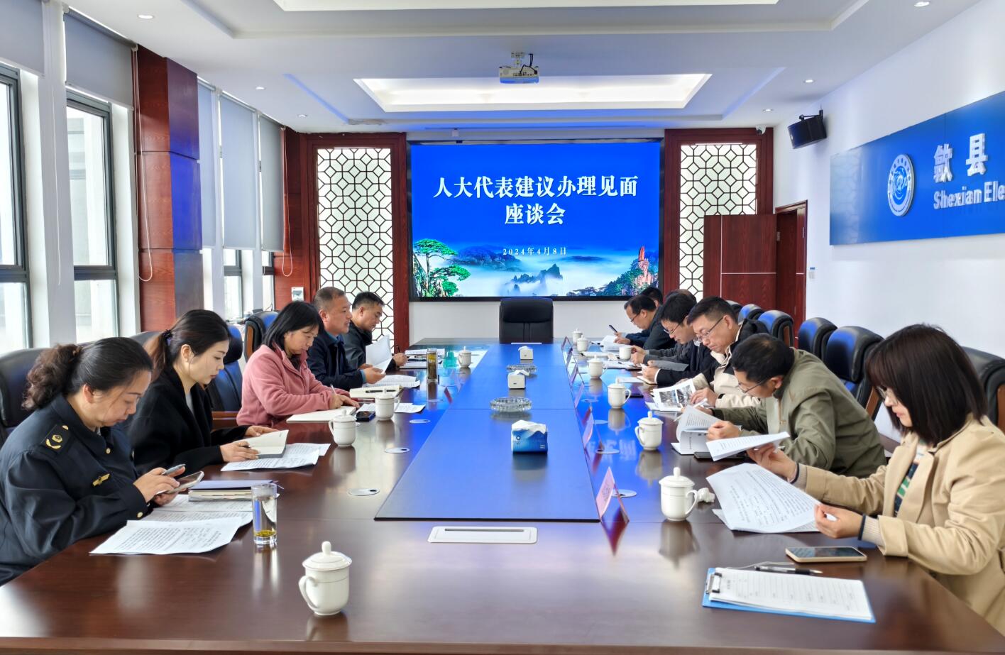 4月8日上午,人大代表建議辦理見面座談會(huì)在我網(wǎng)點(diǎn)(黃山市知識(shí)產(chǎn)權(quán)“一站式”服務(wù)工作站)5樓會(huì)議室召開,經(jīng)濟(jì)開發(fā)區(qū)管委會(huì)、發(fā)改委、財(cái)政局、科商經(jīng)信局、文旅體局、市場監(jiān)管局等單位分管負(fù)責(zé)人和具體經(jīng)辦股室負(fù)責(zé)人到場參加,會(huì)議由縣市場監(jiān)管局黨組成員丁大勇主持。