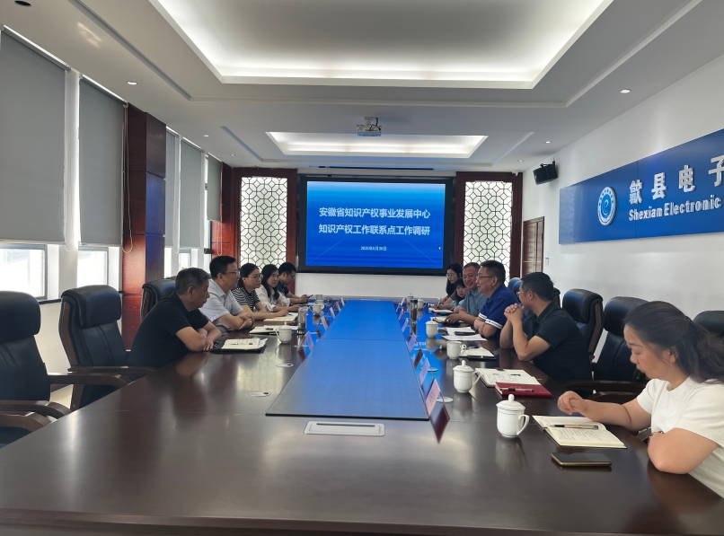 2025 年 5 月 30 日上午,安徽省知識產(chǎn)權(quán)事業(yè)發(fā)展中心副主任、一級調(diào)研員畢清一行,在黃山市知識產(chǎn)權(quán)促進(jìn)科科長施銀明、市知識產(chǎn)權(quán)公共服務(wù)中心主任胡燕、歙縣市場監(jiān)督管理局副局長丁大勇等人的陪同下,深入安徽省知識產(chǎn)權(quán)信息公共服務(wù)網(wǎng)點(diǎn)、黃山市知識產(chǎn)權(quán) “一站式” 服務(wù)工作站——安徽香寧眾創(chuàng)科技服務(wù)公司開展知識產(chǎn)權(quán)工作聯(lián)系點(diǎn)調(diào)研活動,安徽香寧公司總經(jīng)理胡海鋒、香寧公司所屬黃山徽明知識產(chǎn)權(quán)代理事務(wù)所所長葉綠林陪同參與調(diào)研會議。
