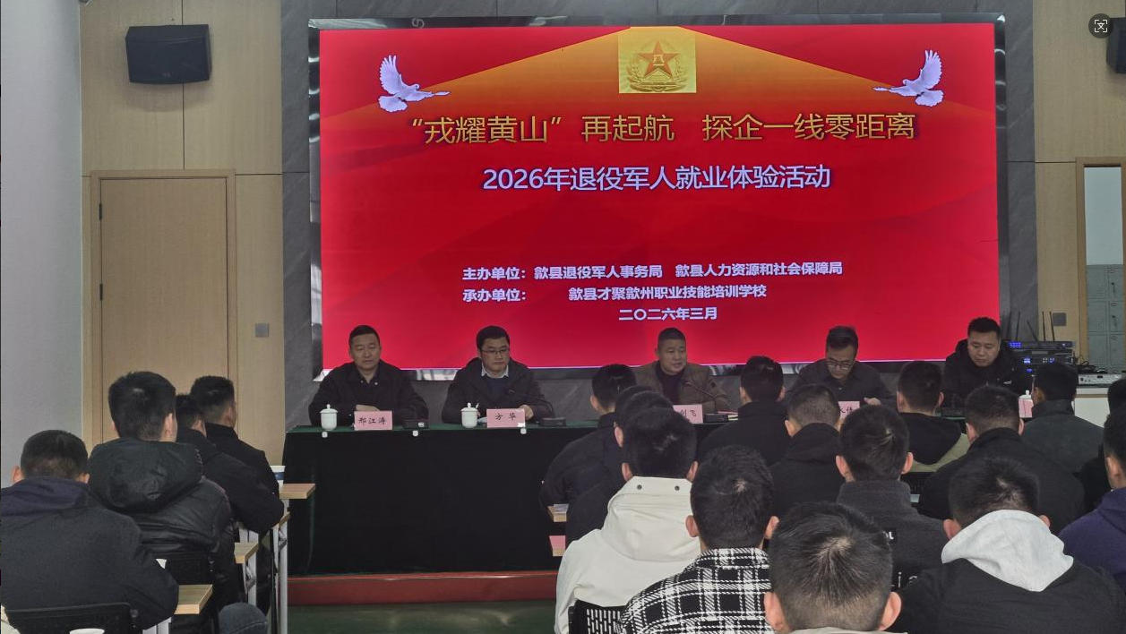 3月6日,為幫助退役士兵盡快適應(yīng)地方發(fā)展、提升就業(yè)創(chuàng)業(yè)能力,我縣2026年度退役士兵適應(yīng)性培訓(xùn)班在歙縣才聚歙州職業(yè)培訓(xùn)學(xué)校隆重開班。市、縣退役軍人事務(wù)局、縣人力資源和社會(huì)保障局相關(guān)負(fù)責(zé)人出席開班典禮,40余名退役士兵參加培訓(xùn)。